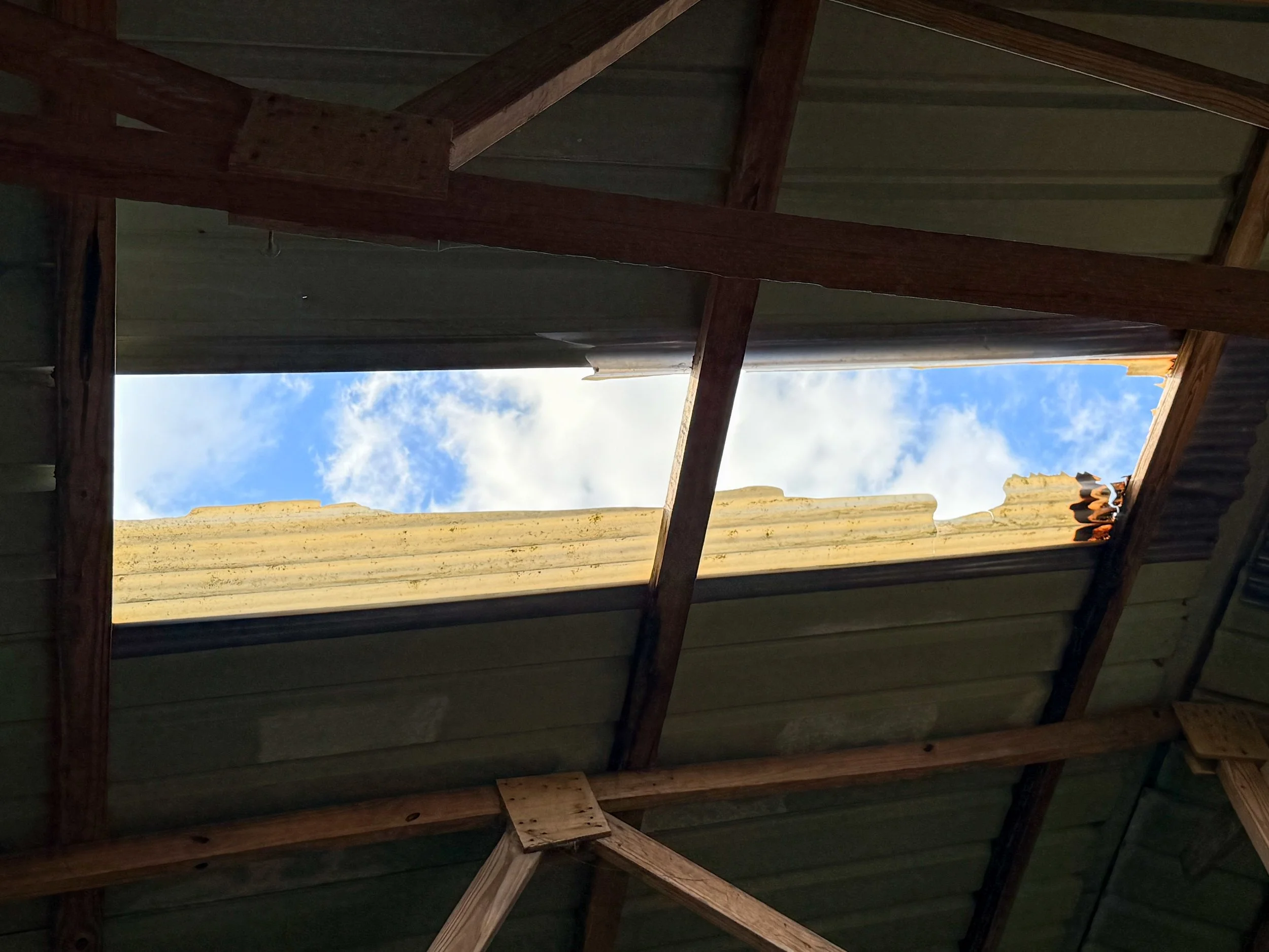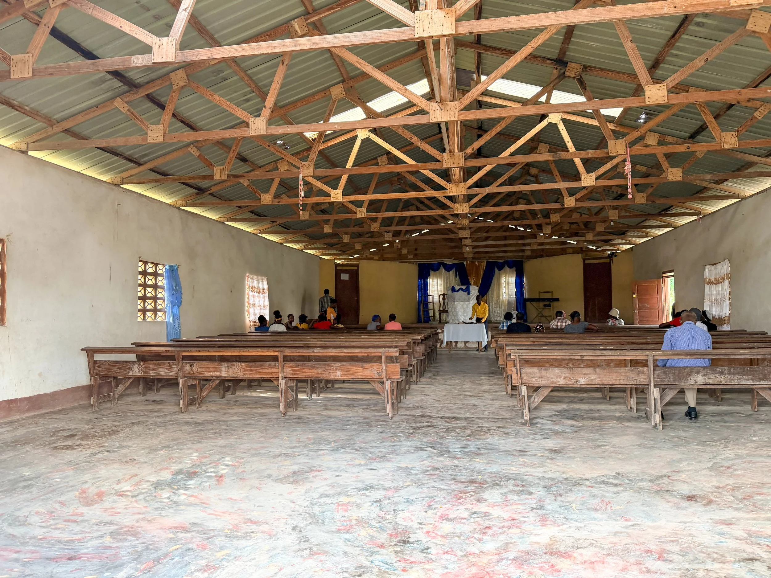 Many of the metal roofing sheets are severely deteriorated, with large holes and broken sections. When it rains, water pours through the roof, often forcing church services to be canceled and making it difficult for the congregation to gather safely.